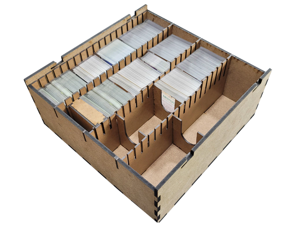 - A caixa organizadora foi atualizada para suportar mais expansões. Esta caixa comporta, aproximadamente 2200 cartas, utilizando todos as divisórias que vão junto com o organizador e a caixa para tokens