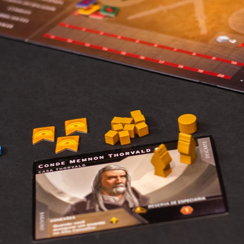 Os jogadores assumem os papéis de líderes das principais Casas Maiores do Landsraad. A batalha pelo domínio da especiaria envolve alianças políticas, intrigas e confrontos diretos. Você escolherá: fidelidade política ou força militar? A decisão é sua, mas lembre-se: quem controla a especiaria, controla o universo.