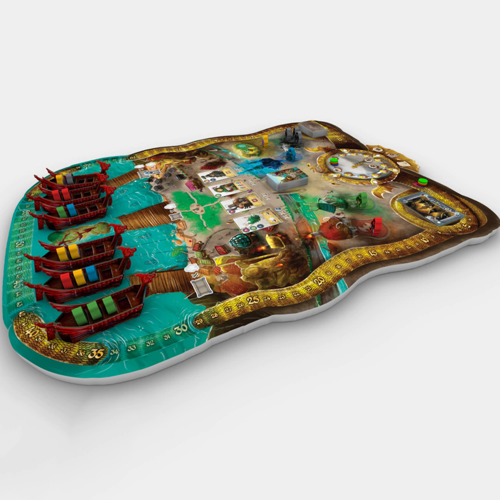 O jogo base apresenta quatro lojas diferentes e que poderão seguir, tanto o caminho da honestidade, como pegar alguns atalhos mais corruptos. Bem-vindos de volta à terra firme e à Enseada dos Mercadores.