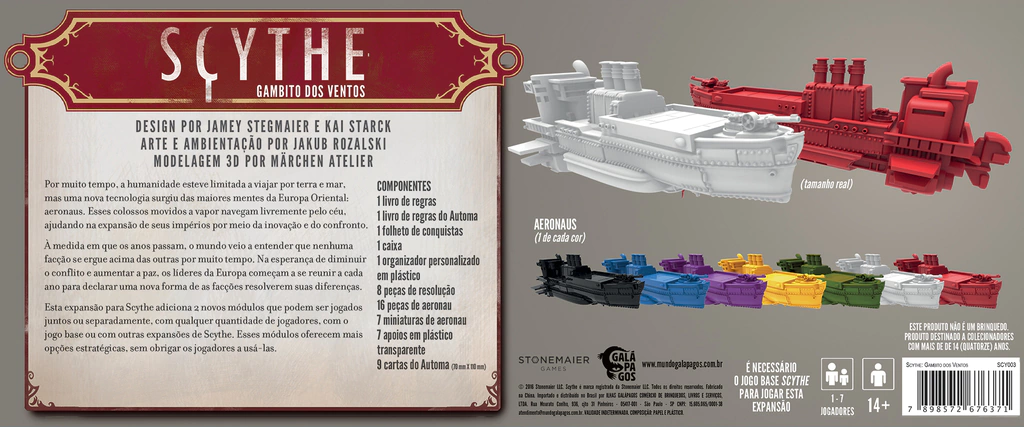Esta expansão adiciona 2 novos módulos: Resolução e Aeronaus. Que podem ser jogados juntos ou em separado com o jogo base, ou com outras expansões de Scythe.
