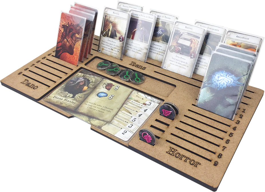 Local para armazenar cartas de itens, dano, horror, marcadores de pista e marcadores de aprimorametos.