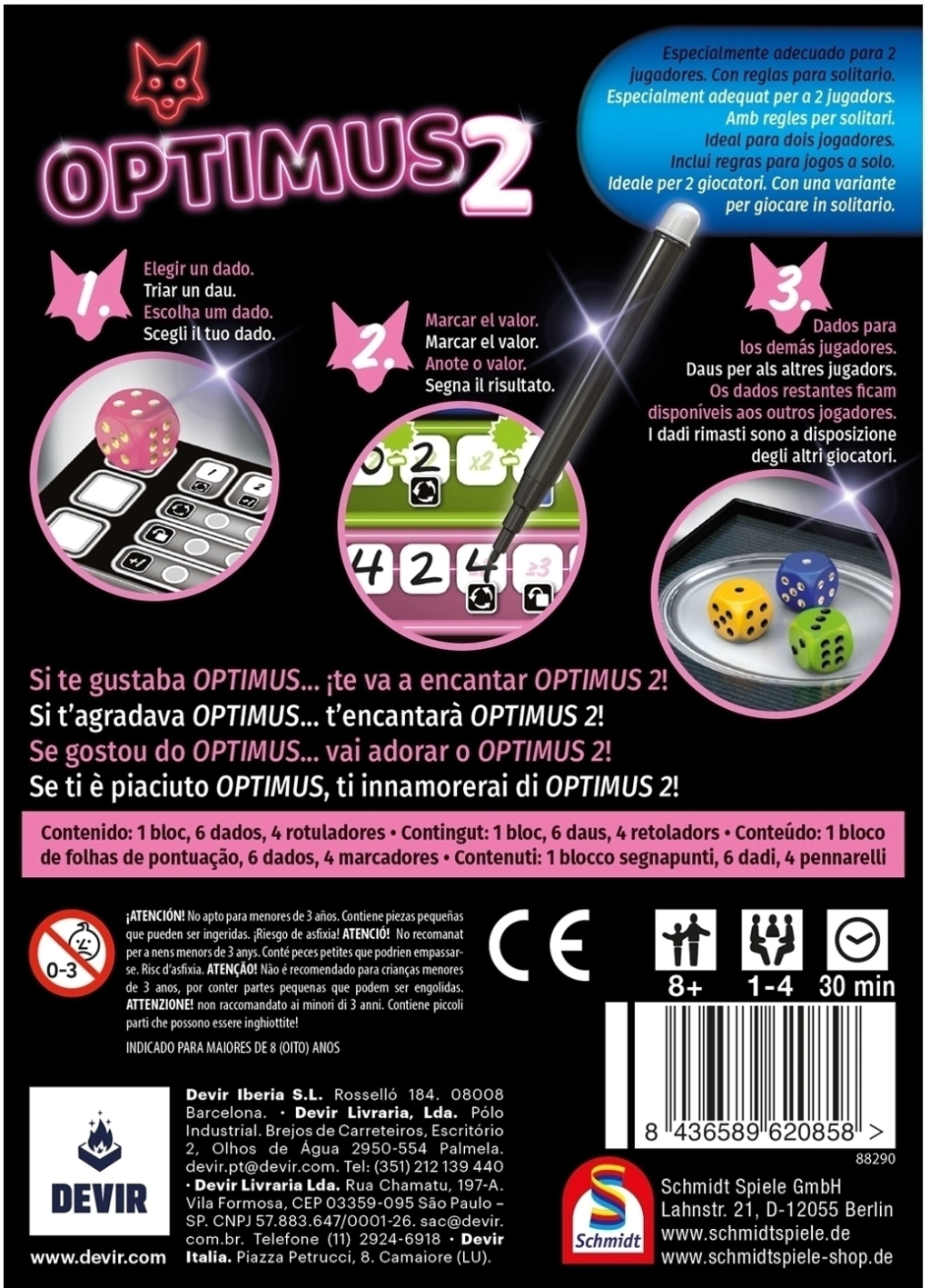 Depois do Optimus, que hoje é considerado o melhor jogo de Roll & Write no mercado, chega ... Optimus 2! Uma nova oportunidade para testar os seus conhecimentos e subir como o melhor "otimizador" da mesa.