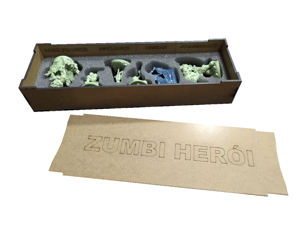 - Proteção e organização de miniaturas: Duas caixas com espuma interna protegem as miniaturas de Super-heróis e Zumbis Heróis, com identificação dos nomes na lateral interna para facilitar a arrumação.