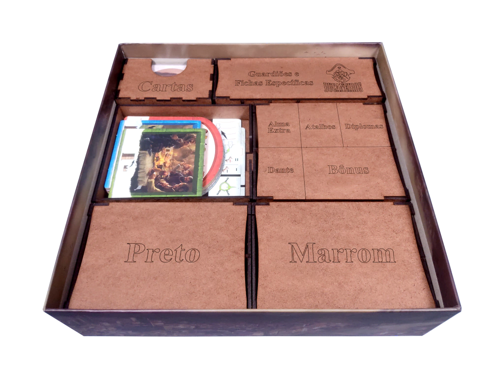 Chegou a hora de organizar e agilizar o setup (preparação) do seu jogo de Inferno com o nosso Organizador MDF. Este produto é ideal para manter todos os componentes do jogo em ordem, permitindo uma experiência de jogo mais fluida e agradável.