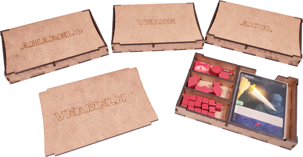 - Os compartimentos para as cartas são compatíveis com sleeves (testado com sleeves Bucaneiros de espessura convencional).