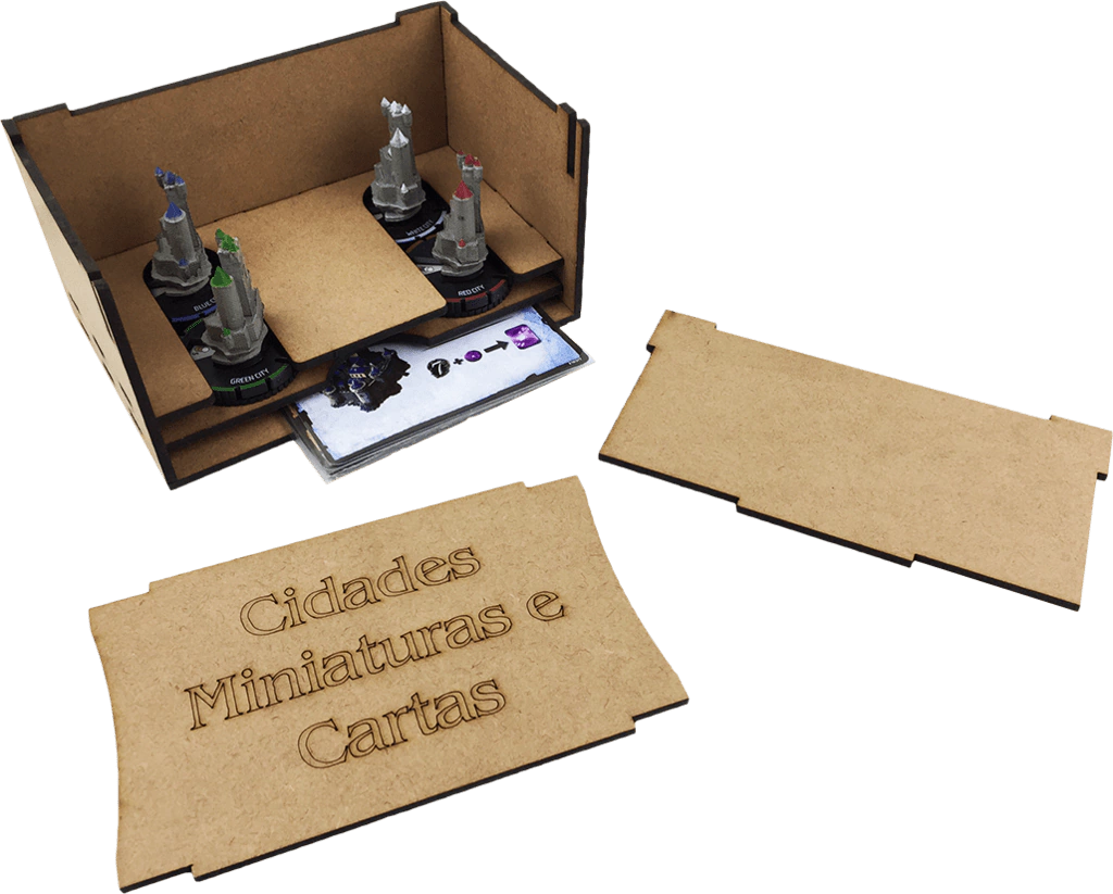 - Card Holder para facilitar a organização das cartas de Descrição de Local e de Pontuação. Esses card holders também podem ser utilizados para organizar outras cartas do jogo dependendo da preferência dos jogadores.
