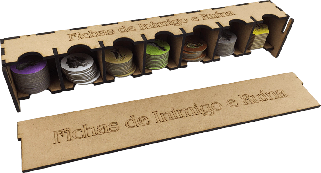 - Dispenser estilo "card holder" para as fichas de inimigo e ruína.