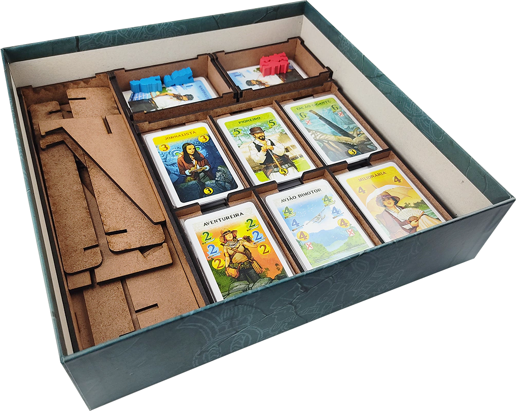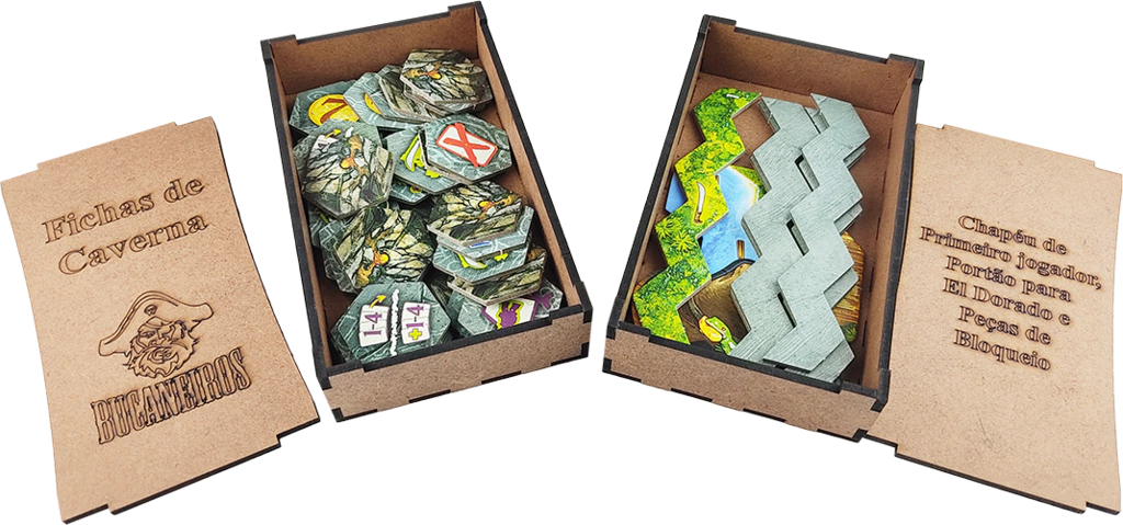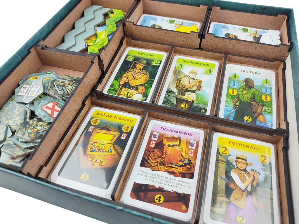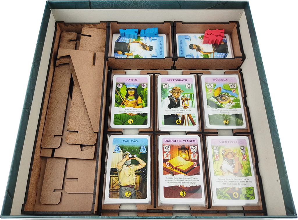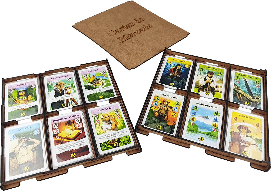 Espaços para as cartas compatíveis com sleeves de espessura normal (testado com sleeves Bucaneiros)..