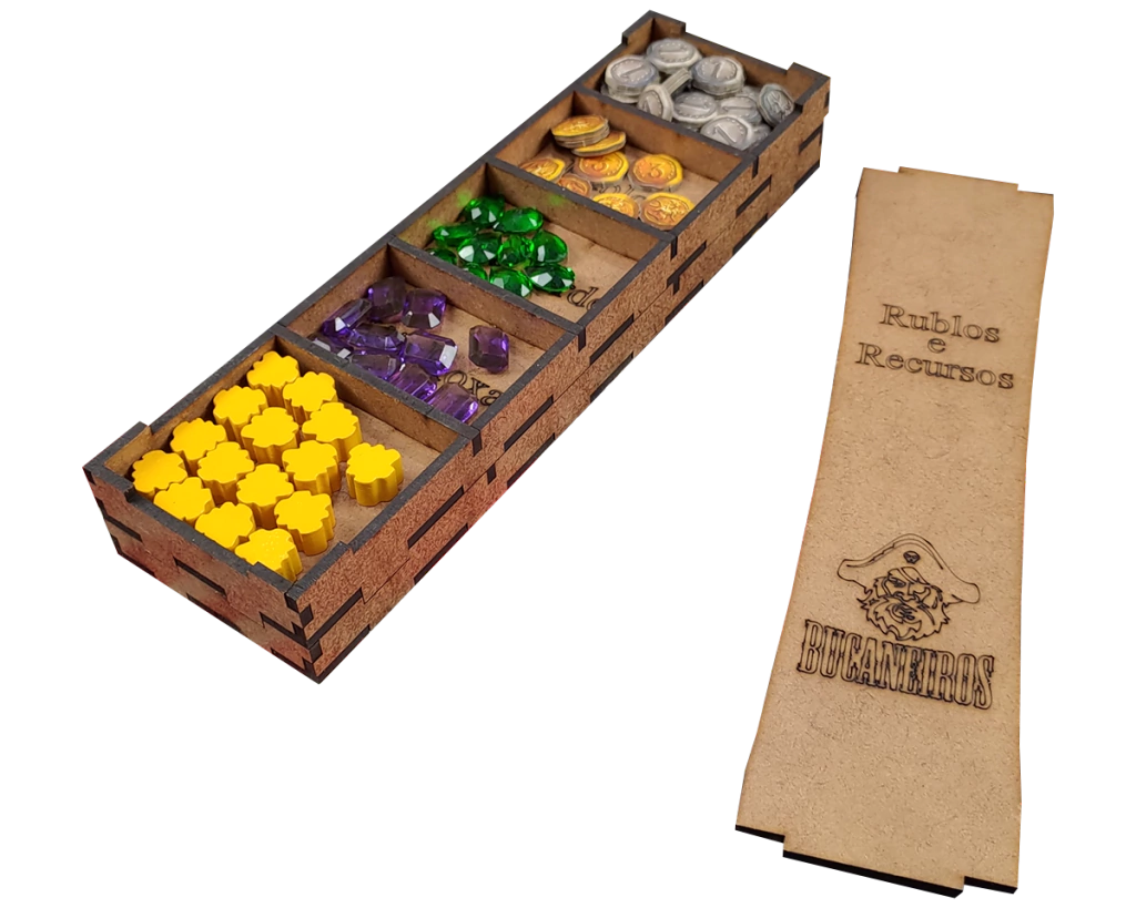 - Todos os espaços para as cartas são compatíveis com sleeves (testado com sleeves Bucaneiros de espessura convencional).