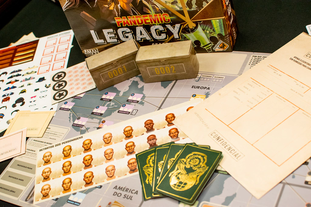 Pandemic Legacy: Season 0 é um jogo cooperativo épico para 2 a 4 jogadores. Você e sua equipe vão jogar uma campanha de 12 missões - uma para cada mês do ano. Seus sucessos e fracassos terão impacto em futuras missões.