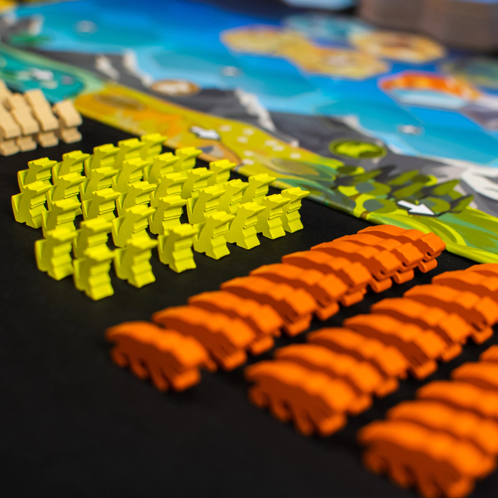 - Presas pequenas (ratos, coelhos e sapos), que se espalham pelos tabuleiros individuais nos tipos certos de terrenos;