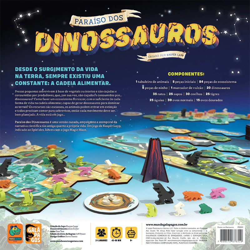 Em Paraíso dos Dinossauros, um jogo abstrato, você é um deus encarregado de projetar um ecossistema com uma cadeia alimentar sustentável de animais predadores e presas. Mas você adora dinossauros, então tudo o que você realmente quer fazer é que eles ponham ovos!