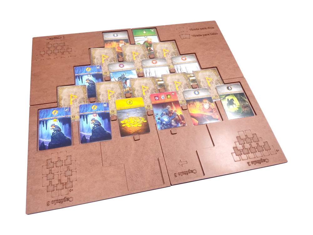 - Distribuição dos Capítulos: Possui design que permite a distribuição clara dos três capítulos do jogo, ajudando na organização durante as partidas.
