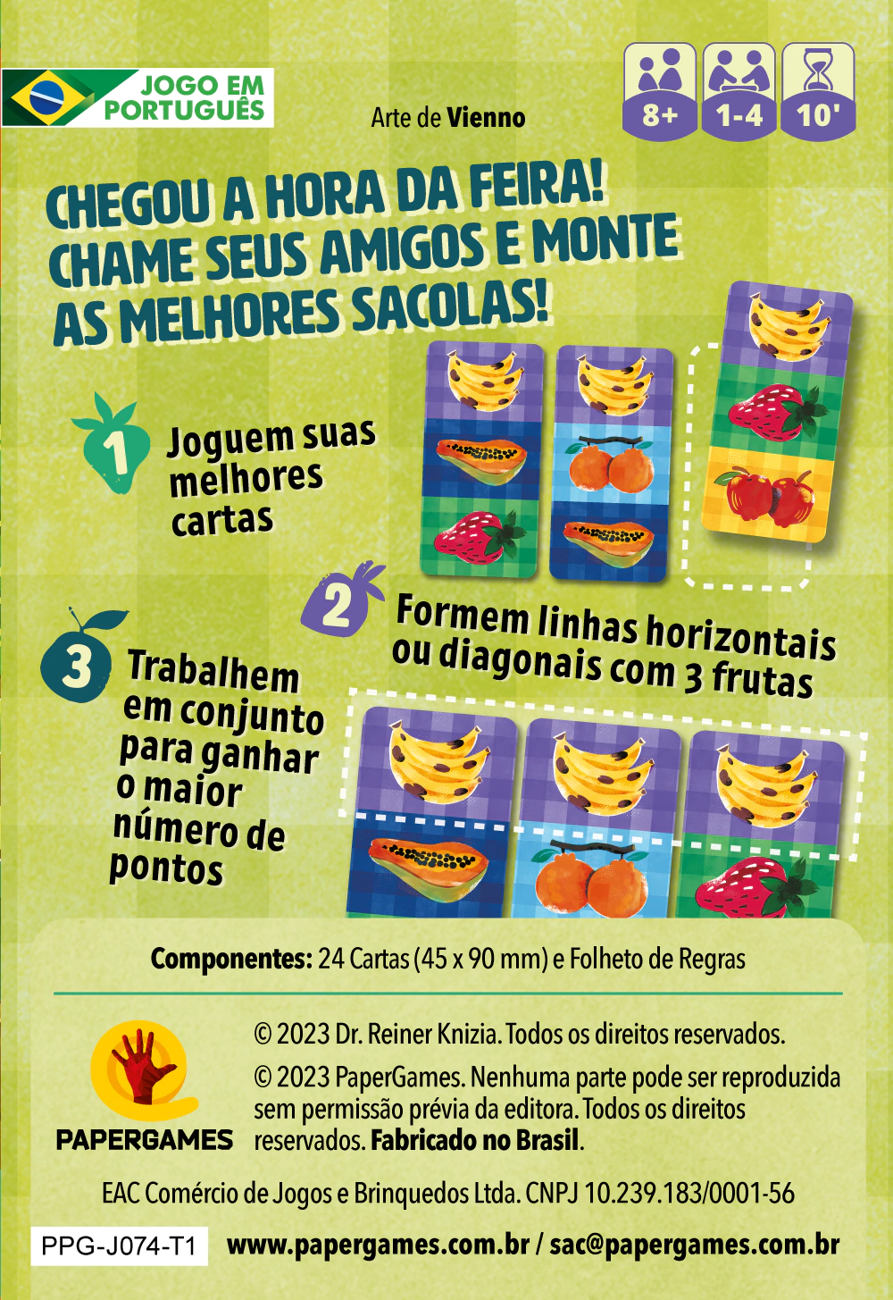 Em Qui-Quitanda, trabalhe em conjunto com os outros jogadores para organizar suas sacolas de frutas, formando sequências (horizontais ou diagonais) para conquistar pontos.