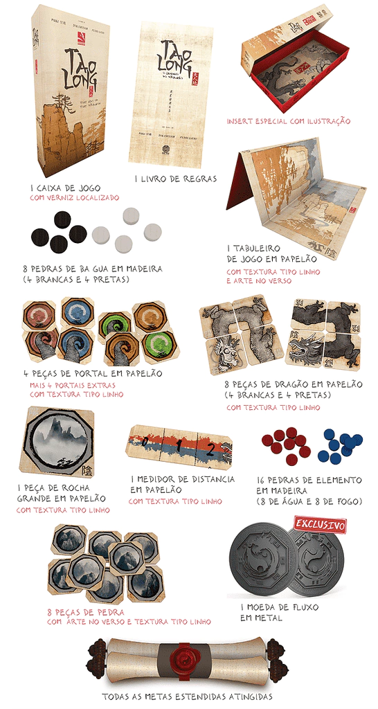 Tao Long é um jogo circular no estilo de abstratos em que cada ação tomada deixa diferentes opções para seu adversário.