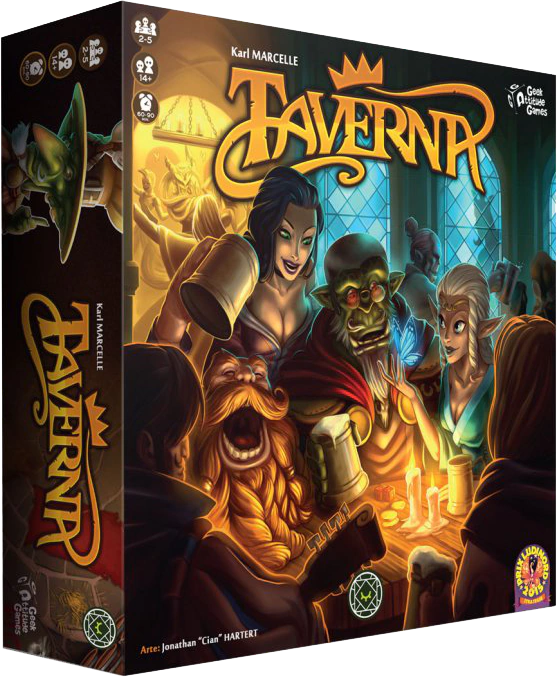 Em Taverna, você joga como um taberneiro da cidade, ansioso para lucrar com esta celebração e disseminar sua fama. A fim de fazer isso, você precisará se dar bem com os quatro povos do reino, e terá de lidar com as exigências da Corte Real. Cabe a você ser cortês com todos eles. Você jogará limpo? Ou usará de truques, feitiços e sua influência com os dignitários mais famosos do reino?