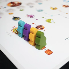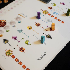Mecânica: colecionar componentes, movimento ponto-a-ponto, jogadores com diferentes habilidades, linha do tempo